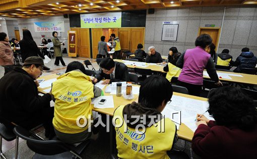 [아시아경제 윤동주 기자] 2011년도 첫 시프트 공급 접수 첫날인 14일 서울 강남구 일원동 SH공사 접수처에 신청자들이 몰려 접수를 하고 있다.
