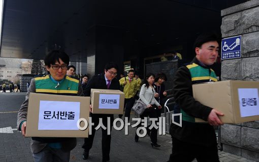[아시아경제 윤동주 기자] 민방위 날을 맞아 15일 서울 세종로 정부종합청사에서 열린 '재난대비 긴급구조 종합훈련'에서 공무원들이 중요 문서등을 들고 청사를 탈출하고 있다.