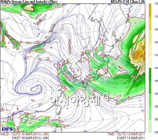 [아시아경제 김승미 기자] 기상청은 16일 일본의 방사성 물질 낙진 가능성과 관련해, 한반도의 상공의 기류는 북서풍이 계속되고 있다고 밝혔다.