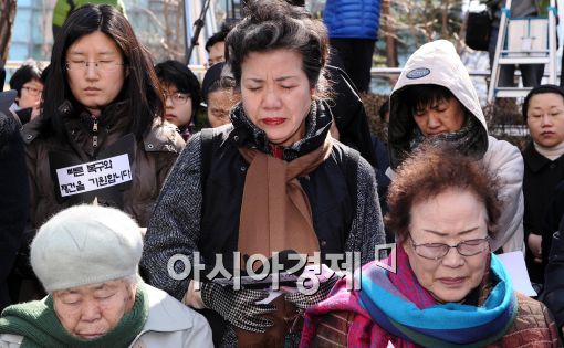 [아시아경제 이재문 기자]일본군 위안부 피해 할머니들이 16일 정오 서울 종로구 주한일본대사관 앞에서 열린 제961차 수요집회에서 일본 대지진 희생자들을 추모.
