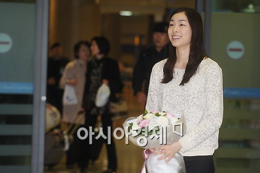 [인천공항=스포츠투데이 이기범 기자]일본 지진으로 인해 '2011 ISU 세계피겨스케이팅 선수권대회'가 무기한 연기된 가운데 '피겨 여왕' 김연아가 20일 오후 인천국제공항을 통해 귀국하고 있다.