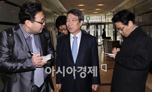 [아시아경제 이재문 기자]정운찬 동반성장위원장이 21일 오전 서울 여의도 동반성장위원회에 출근하고 있다.