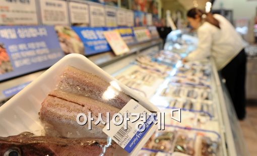 [아시아경제 이재문 기자]일본 후쿠시마 원전 사고로 수산물 등 식품의 방사성 오염에 대한 소비자들의 불안이 커지고 있는 가운데, 21일 오후 일본산 생태를 판매하고 있는 롯데마트 서울역점 수산물 코너에서 소비자들이 국산 수산물을 고르고 있다. 롯데마트는 일본산 수산물에 대한 소비자들의 우려가 커지자 생태 판매를 잠정 중단하고, 22일부터 러시아산 동태를 판매할 예정이다.