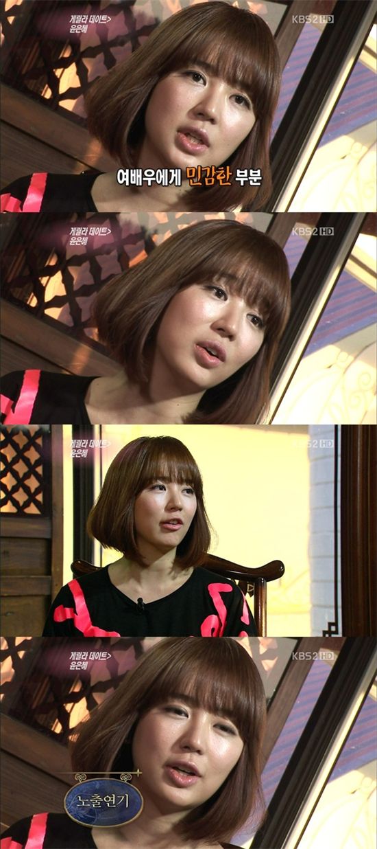 윤은혜는 26일 방송된 KBS2 '연예가중계'의 코너인 게릴라데이트를 통해 배우로서 겪는 고민과 향후 포부에 대해 밝혔다.