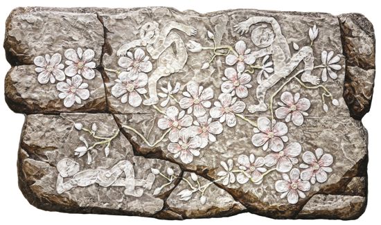 뿐만 아니라 힘차게 약동하는 가지는 아이들의 무게를 적절한 탄력으로 균형을 유지하여 결코 부러지는 법이 없다는 것이다. 음각으로 파여진 선(線)은 깊게 또는 얕게 혹은 빽빽하고 성글게 끊임없이 변화하며 물 흐르는 듯 하다.