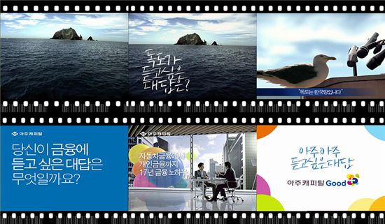 아주캐피탈의 이번 광고 캠페인은 독도편을 포함, 일상 생활 속에서 일어날 수 있는 5개의 재미있는 에피소드를 통해 친근한 소비자 브랜드로 고객니즈에 적극 부응하겠다는 의미를 담았다.