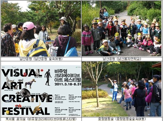 남산공원에서는 남산에 사는 봄꽃들의 생존전략과 식물의 구조, 기능 등을 알아볼 수 있는 '남산봄자연학교'와 남산의 꽃길을 걸으며 꽃이 우리에게 주는 좋은 점에 대해 알아보는 '남산숲속여행'이, 지난해 개장한 중랑캠핑숲에서는 '중랑캠핑숲에서 즐기는 신나는 숲속여행'이라는 주제로 프로그램이 진행된다.