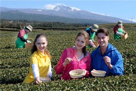 제주는 중국의 황산, 일본의 후지산과 더불어 세계 3대 녹차 생산지로 손꼽힌다. 이날 다원을 찾은 외국인 관광객들은 채엽전문가들의 도움을 받아 햇 녹차 잎을 직접 따보고 햇차를 시음하며 즐거운 한때를 보냈다.
