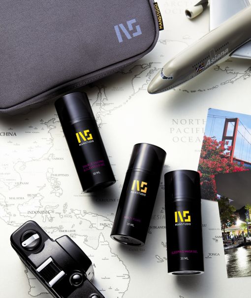 짐이 많은 여행길이나 출장 시에는 면도와 클렌징을 동시에 할 수 있는 '더블클렌징젤'과 피부 보습을 위한 '멀티플루이드', 지친 피부를 관리하는 '슬리핑마스크'가 들어 있는 트래블 키트가 적합하다.