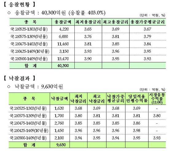 국고채바이백 1조, 낙찰 0.963조 응찰 4.03조, 금리 3.69~3.98% - 재정부