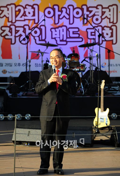 [아시아경제 윤동주 기자] 28일 서울 여의도 한강시민공원 플로팅스테이지에서 열린 '제2회 아시아경제 직장인 밴드 대회'에 박재완 장관 노동부 장관이 축사를 .