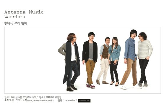 유희열, 정재형, 루시드폴, 페퍼톤스, 박새별 등이 다시 뭉친다. <앵콜 안테나뮤직 워리어스(Antenna Music Warriors) 콘서트 언제나, 우리 함께>(이하 <안테나뮤직 워리어스>)가 5월 28일 오후 7시 서울 서대문구 대현동 이화여자대학교 대강당에서 열리는 것.