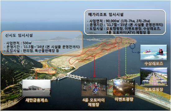 새만금방조제는 지난해 4월 개통 이후 1년 동안 900만명이 다녀가는 등 서해안의 새로운 관광명소로 떠올랐으나 휴게소 등 편의시설이 부족하다는 지적을 받아왔다.