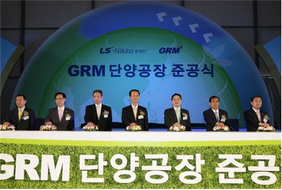 [아시아경제 채명석 기자] LS니꼬동제련은 31일 충북 단양 ‘매포 자원순환 농공단지’에서 자회사인 지알엠의 ‘단양공장’ 준공식을 개최했다.