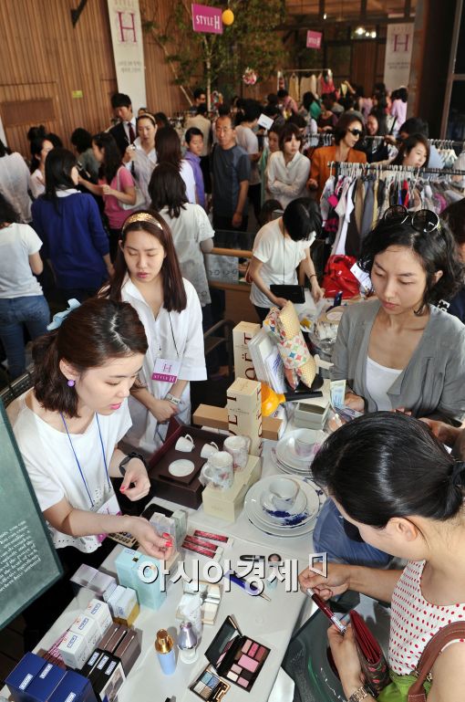 [아시아경제 이재문 기자]5일 서울 강남구 현대백화점 압구정본점 옥상공원에서 열린 자선장터 '그린마켓'을 찾은 고객들이 물건을 고르고 있다.