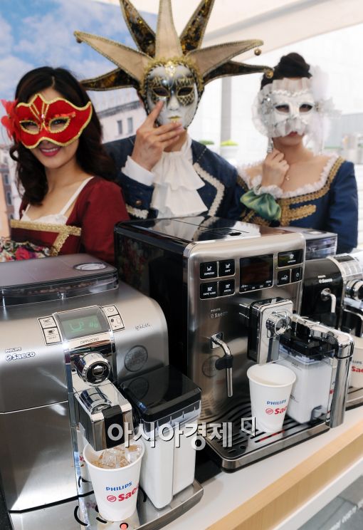 [아시아경제 이재문 기자]필립스전자가 22일 서울 세종문화회관에서 필립스세코의 전동 오리지날 에스프레소 머신 ‘엑스프렐리아’와 ‘신시아 카푸치노’를 선보이고 있다. 이번에 선보인 신제품 2종의 가격은 엑스프렐리아 380만원, 신시아 카푸치노 320만원이다.