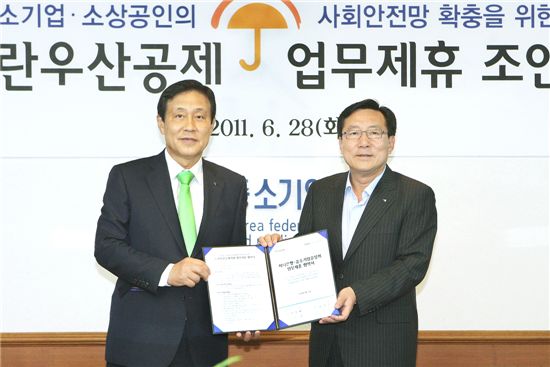 [아시아경제 최대열 기자]중소기업중앙회는 28일 하나은행과 노란우산공제 가입대행업무 위탁에 관한 업무협약을 맺었다고 밝혔다.