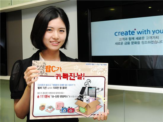삼성증권은 회사 공식 블로그인 '태평로의 유쾌한 팝C 이야기' 오픈 1주년과 방문자 100만 명 돌파를 기념해 7월말까지 '팝C가 귀빠진날!' 이벤트를 진행한다고 밝혔다.