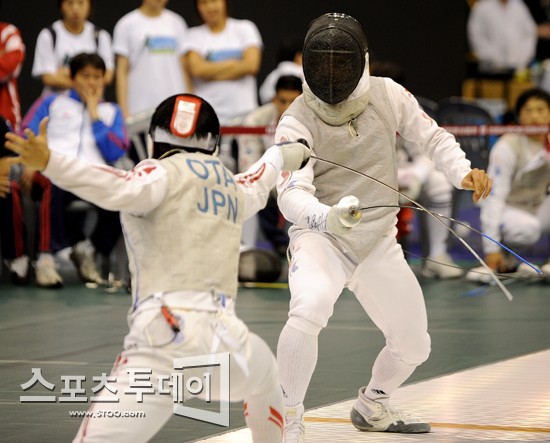 [스포츠투데이 정재훈 기자] 12일 오후 서울시 송파구 올림픽공원 체조경기장에서 열린 '2011 아시아펜싱선수권대회' 남자 플뢰레 단체전 준결승에서 한국 최병철(오른쪽)이 일본 오타 유키(왼쪽)를 상대로 접전을 벌이고 있다. @include $docRoot.'/uhtml/article_relate.php';?>