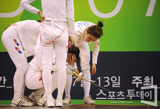 최인정(계룡시청), 신아람(계룡시청), 최은숙(광주서구청)이 나선 여자 대표팀은 12일 서울 올림픽공원 제1체육관에서 열린 에페 단체전 중국과의 결승에서 접전 끝에 26-27로 졌다. 준결승에서 일본을 33-29로 꺾은 상승세를 잇지 못하며 은메달을 목에 걸었다.