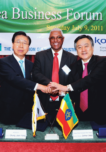 또한 9일 아디스아바바에서 열린 한-에티오피아 비즈니스 포럼을 통해 에티오피아의 철강산업 마스터플랜 연구결과를 발표하기도 했다. 이와 함께 포스코는 한국광물자원공사·에티오피아 광물자원개발회사(EMDSC)와 공동으로 탄탈룸 등 광물자원 탐사 및 개발을 추진키로 했다.