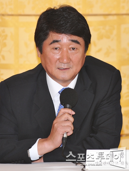 [스포츠투데이 정재훈 기자] 18일 오전 서울 프레스센터 외신기자클럽에서 'Again 배구 슈퍼리그! 한양대 vs 성균관대' 조인식이 열렸다. 신치용 성균관대 OB팀 감독이 소감을 밝히고 있다.