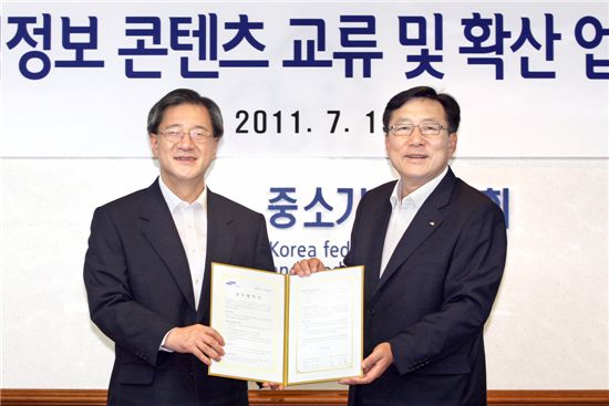 [아시아경제 최대열 기자]중소기업중앙회는 19일 삼성경제연구소와 중소기업 경쟁력 강화를 위한 지식정보 콘텐츠 교류 및 확산 업무협약을 맺었다고 밝혔다. 이번 협약을 통해 중앙회에서 발행하는 중소기업뉴스에 별도 코너를 새로 만드는 등 오프라인 네트워크를 토대로 양측은 각종 정보를 교류하는 데 상호 협력하기로 합의했다.