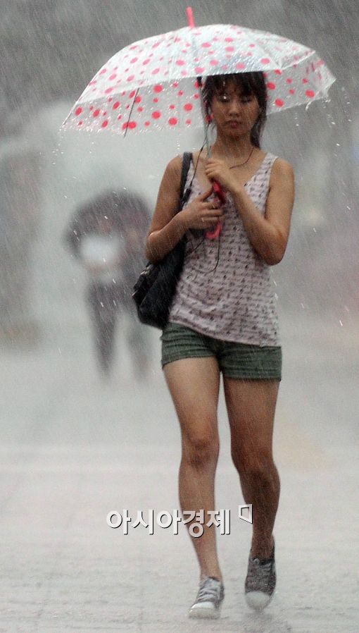 [아시아경제 이재문 기자]서울을 비롯한 수도권과 충청지방에 장대비가 내리는 가운데 26일 오후 서울 광화문네거리에서 시민들이 우산을 쓰고 지나고 있다.