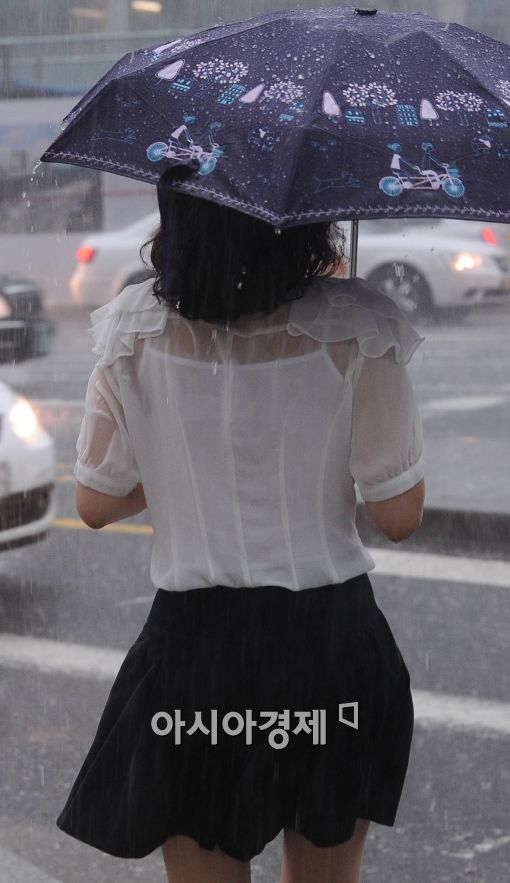 [아시아경제 이재문 기자]서울을 비롯한 수도권과 충청지방에 장대비가 내리는 가운데 26일 오후 서울 광화문네거리에서 시민들이 우산을 쓰고 지나고 있다.