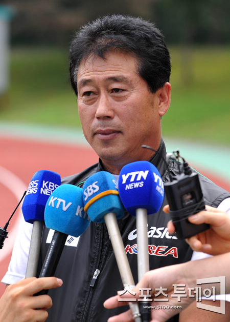 [태릉=스포츠투데이 정재훈 기자] 10일 오전 태릉선수촌 챔피언하우스에서 '대구세계육상선수권대회 국가대표선수단 발대식'이 열렸다. 문봉기 총감독이 대회를 앞둔 각오를 밝히고 있다.