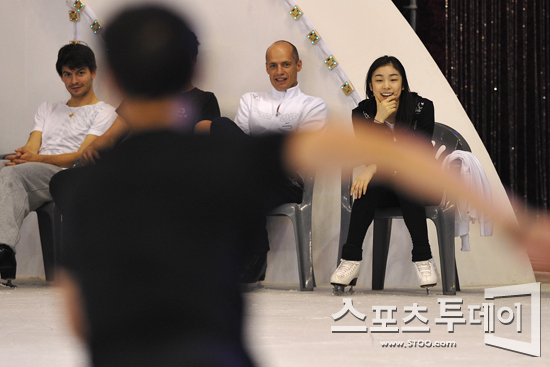 [스포츠투데이 정재훈 기자] '피겨여왕' 김연아가 12일 오후 올림픽공원 체조경기장에서 '김연아 아이스쇼-2011 삼성 갤럭시 하우젠 올댓스케이트 서머'의 리허설 도중 동료들의 연기를 지켜보고 있다.