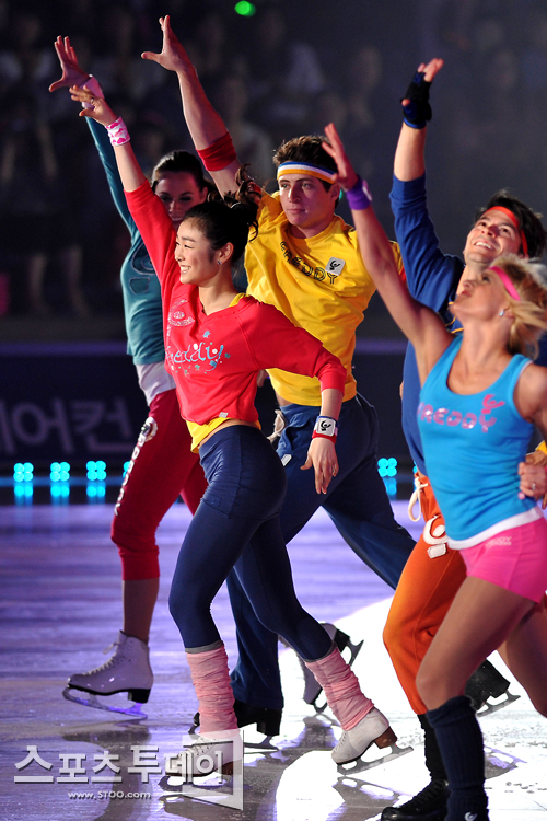 [스포츠투데이 정재훈 기자] '피겨여왕' 김연아와 세계 최고 스케이터들이 13일 오후 올림픽공원 체조경기장 특설무대에서 열린 '김연아 아이스쇼-2011 삼성 갤럭시★하우젠 올댓스케이트 서머' 오프닝 무대를 펼치고 있다.