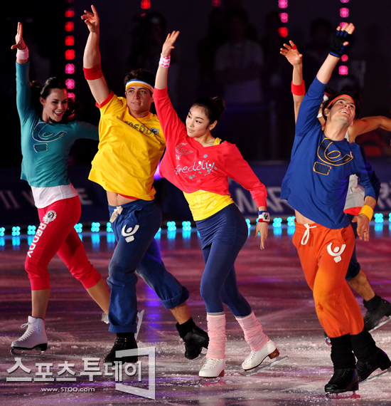 [스포츠투데이 정재훈 기자] '피겨여왕' 김연아와 세계 최고 스케이터들이 13일 오후 올림픽공원 체조경기장 특설무대에서 열린 '김연아 아이스쇼-2011 삼성 갤럭시★하우젠 올댓스케이트 서머' 오프닝 무대를 펼치고 있다.