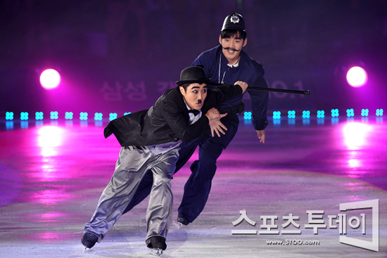 [스포츠투데이 정재훈 기자] '달인' 김병만이 13일 오후 올림픽공원 체조경기장 특설무대에서 열린 '김연아 아이스쇼-2011 삼성 갤럭시★하우젠 올댓스케이트 서머'에서 연기를 펼치고 있다.