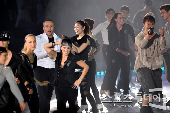 [스포츠투데이 정재훈 기자] 김연아와 세계 최고 스케이터들이 13일 오후 올림픽공원 체조경기장 특설무대에서 열린 '김연아 아이스쇼-2011 삼성 갤럭시★하우젠 올댓스케이트 서머' 첫회 공연을 마치고 관객들에게 인사하고 있다.