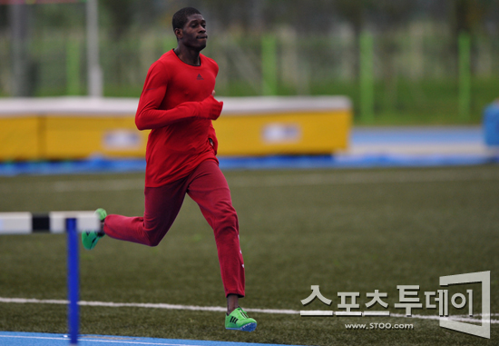 [대구=스포츠투데이 정재훈 기자] 2011 대구세계육상선수권대회 출전을 위해 세계 각지에서 모인 육상선수들이 23일 오후 율하동 선수촌 훈련장에서 훈련을 가졌다. 훈련중인 한 선수의 붉은 트레이닝복이 시선을 끈다.