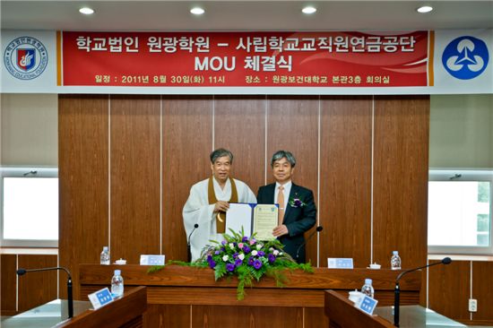 [아시아경제 박민규 기자] 사립학교교직원연금공단(이하 사학연금)은 30일 전북 익산에 위치한 원광보건대학에서 학교법인 원광학원과 복지 제휴를 위한 업무협약(MOU)을 체결했다고 밝혔다.