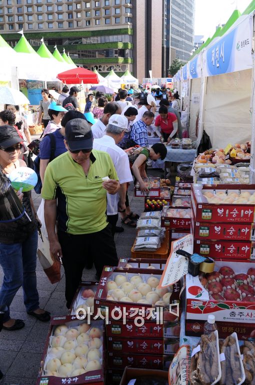 [아시아경제 이재문 기자]31일 오후 서울광장에서 열린 ‘2011농수특산물 한마당장터’를 찾은 시민들이 전국 농수특산물을 둘러보고 있다.