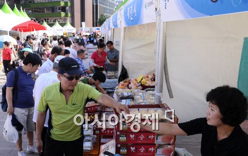 [아시아경제 이재문 기자]31일 오후 서울광장에서 열린 ‘2011농수특산물 한마당장터’를 찾은 시민들이 전국 농수특산물을 둘러보고 있다. 이번 농수특산물 한마당장터는 다음달 4일까지 서울광장과 청계광장에서 열린다.
