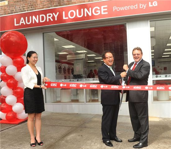 LG전자는 8일(현지시각) 미국 최대 도시인 뉴욕에서 상업용 세탁 설치·공급 1위 업체인 '코인맥(Coinmach)'사와 함께 LG 드럼세탁기와 건조기 제품만으로 꾸며진 신개념 세탁방 '론드리 라운지(Laundry Lounge)' 오픈 행사를 개최했다.