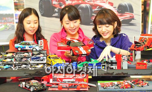 [아시아경제 윤동주 기자] F1 그랑프리대회를 앞두고 10일 서울 용산구 아이파크백화점을 찾은 고객들이 F1최대 우승팀인 페라리의 F1 시리즈 모델등 총8종의 F1 .