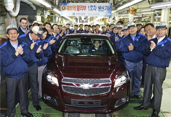 [포토]중형 세단 쉐보레 '말리부' 1호차 양산 "축하해요"