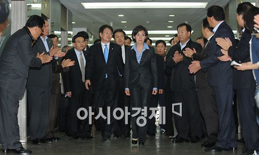 [아시아경제 양지웅 기자] 서울시장 보궐선거가 끝난 26일 오후 나경원 후보가 서울 중구 프레스센터 선거캠프로 발걸음을 옮기고 있다.