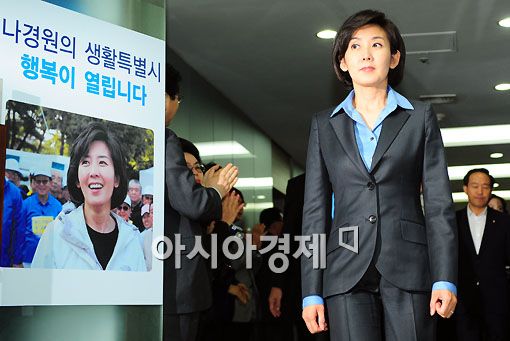 [아시아경제 양지웅 기자] 서울시장 보궐선거가 끝난 26일 오후 나경원 후보가 서울 중구 프레스센터 내 선거캠프로 발걸음을 옮기고 있다.