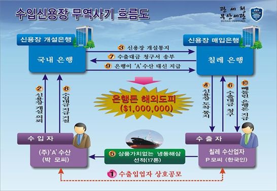 부산에 있는 A수산 대표 박씨는 최근 경영악화 등으로 회사가 부도위기에 놓이자 칠레에 있는 수출업자와 짜고 국내은행에 수입신용장을 열어 상품가치가 거의 없는 냉동해삼을 들여왔다.