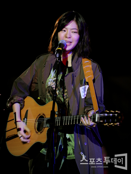 [스포츠투데이 정재훈 기자] 27일 오후 서울 장충체육관에서 'NH 농협 2011-2012 V리그' 여자부 GS칼텍스와 KGC 인삼공사의 경기에 앞서 가수 장재인이 축하공연을 펼치고 있다.