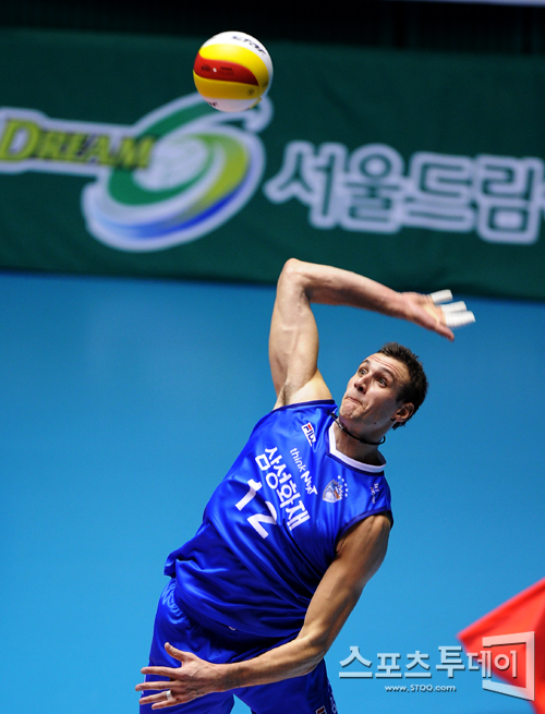 [스포츠투데이 정재훈 기자] 27일 오후 서울 장충체육관에서 열린 'NH 농협 2011-2012 V리그' 남자부 드림식스와 삼성화재의 경기에서 삼성화재 가빈이 공격을 시도하고 있다.