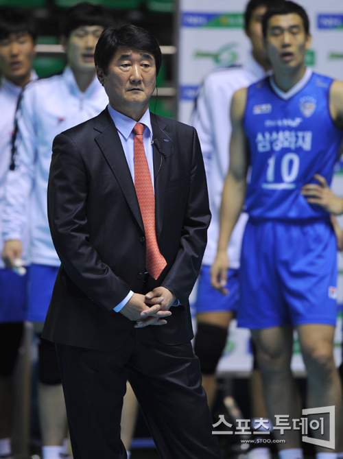 [스포츠투데이 정재훈 기자] 27일 오후 서울 장충체육관에서 열린 'NH 농협 2011-2012 V리그' 남자부 드림식스와 삼성화재의 경기에서 신치용 삼성화재 감독이 경기를 지켜보고 있다.