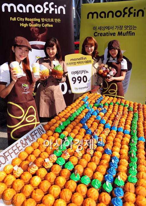[아시아경제 양지웅 기자] 31일 서울 종로구 종각역에서 수제머핀 전문점 '마노핀'의 개점을 기념해 모델들이 대형머핀과 커피잔을 들고 포즈를 취하고 있다. 국내 최초 수저머핀 커피전문점 '마노핀'은 최근 서울 메트로와 임대계약을 체결해 지하철 주요 역사 내 27개의 매장을 개점할 예정이다.
