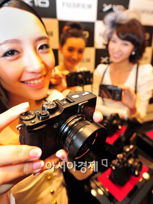 [아시아경제 윤동주 기자] 한국후지필름은 23일 서울 중구 프라자호텔에서 아날로그 감성의 컴팩트 카메라 'X10'을 선보이고 있다. 이번에 선보이는 'X10'은 아날로그 필름 카메라의 외형에 수동식 광학 4배 줌 렌즈, '스냅 스타트업'이라는 전원 방식등 첨단의 기능을 더한것이 특징이다.